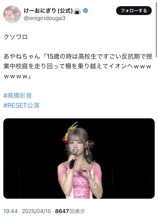 【AKB48】15歳の頃の髙橋彩音ちゃんがあまりにも破天荒過ぎるwwwww 高橋彩音 X Facebook はてブ Pocket LINE コピー 2025.04.19 元記事リンク: https://akb48taimuzu.livedoor.biz/archives/62292114.html