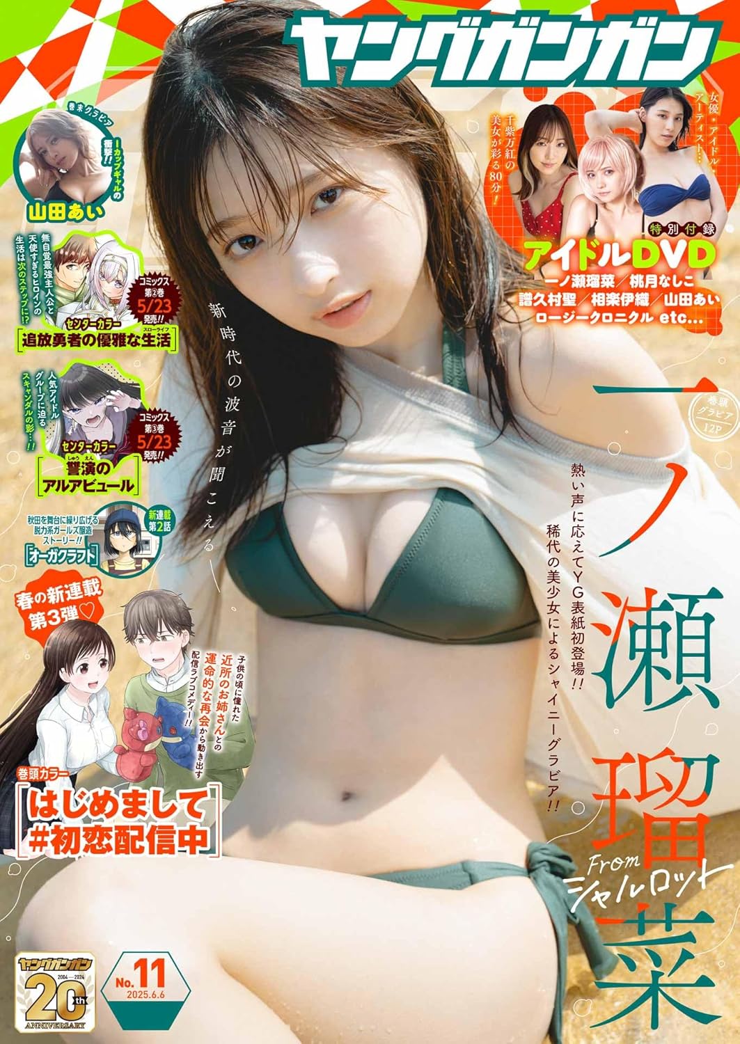 2025年5月発売◆表紙&巻頭グラビアはYG初表紙!!「一ノ瀬瑠菜」が特大12Pで堂々登場!!フレッシュな笑顔や、凛とした大人びた視線――。豊かな表情を見せるグラビア界の超新星が新たな時代を開拓する!!巻末グラビアはIカップの豊満ボディー「山田あい」!!色香全開の彼女の魅力に目が離せな…