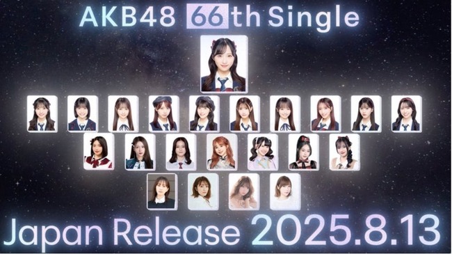 【速報】AKB48 66thシングルに指原莉乃、前田敦子、小嶋陽菜、高橋みなみが参加!海外姉妹グループからも7名!センターは小栗有以、新井彩永が初選抜!今回は22人選抜!! AKB48 X Facebook はてブ Pocket LINE コピー 2025.06.01 元記事リンク: https://akb48taimuzu.livedoor.biz/archives/62391938.html