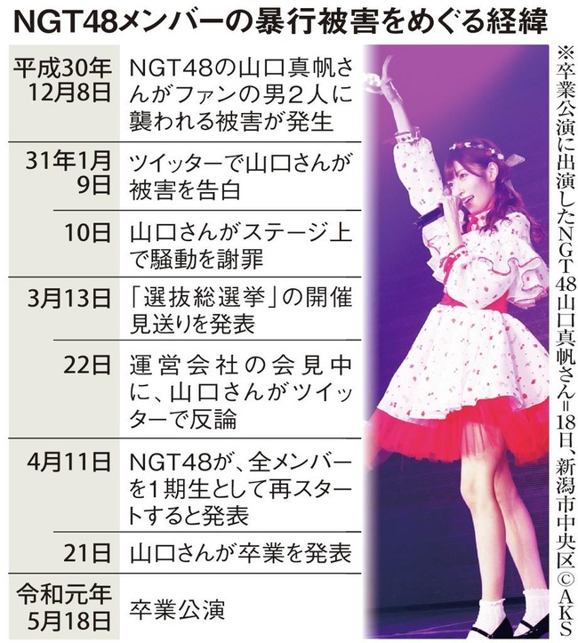 NGT事件でググったらWikipediaに出てきたんだけどそんなに凄い事件だったん?【NGT48山口真帆暴行被害事件】 山口真帆 X Facebook はてブ Pocket LINE コピー 2025.06.07 元記事リンク: https://akb48taimuzu.livedoor.biz/archives/62407199.html