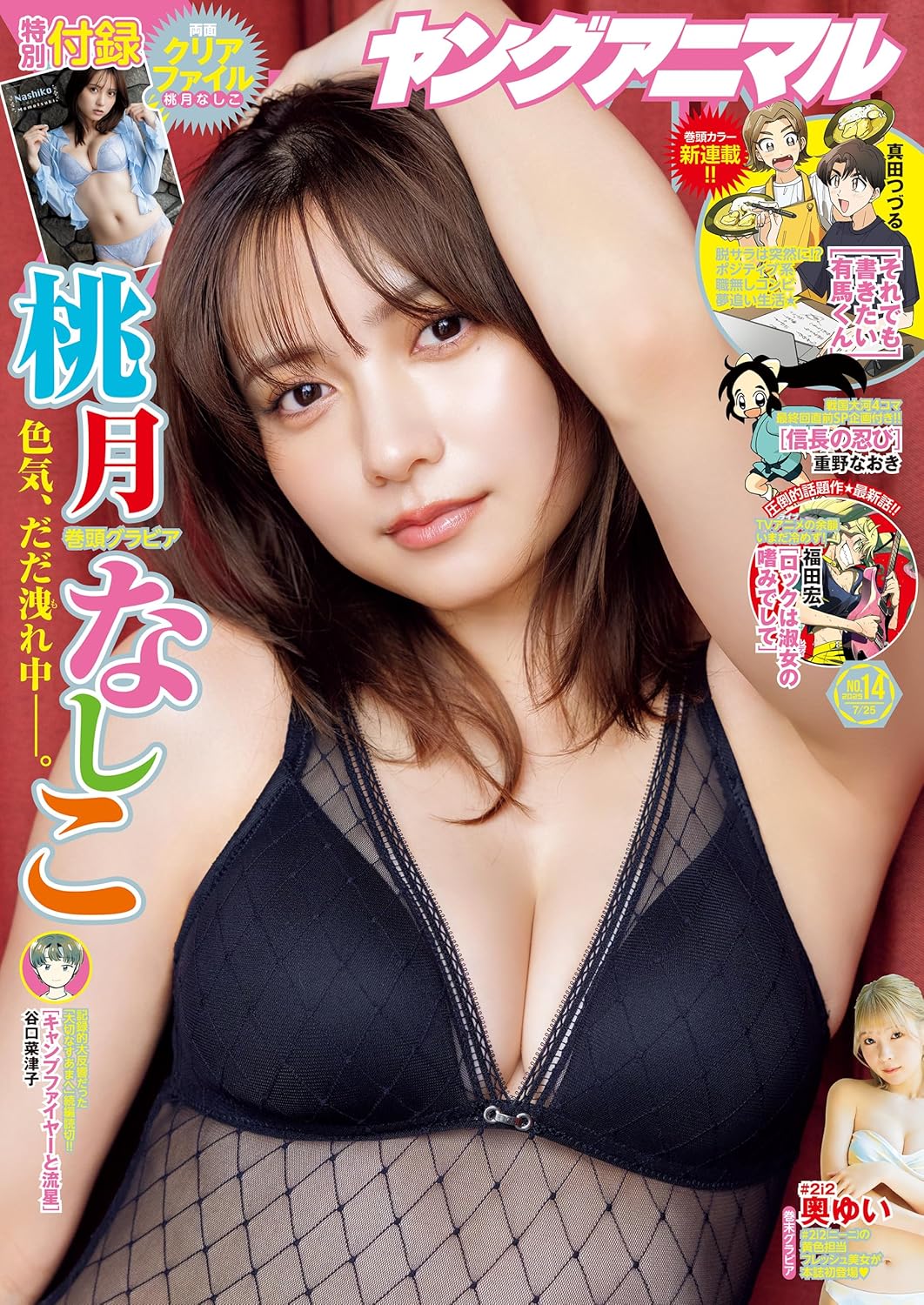 2025年7月発売【電子版「ヤングアニマル」内の表紙・情報・価格表示・ページ番号は紙で発行した当時のものとなります。また、電子版には付録・記事・予告等は含まれておりません。何卒ご了承ください】表紙&巻頭グラビアは、モデル・グラビア・女優等で大活躍中のなしこたそがYAに帰還で…