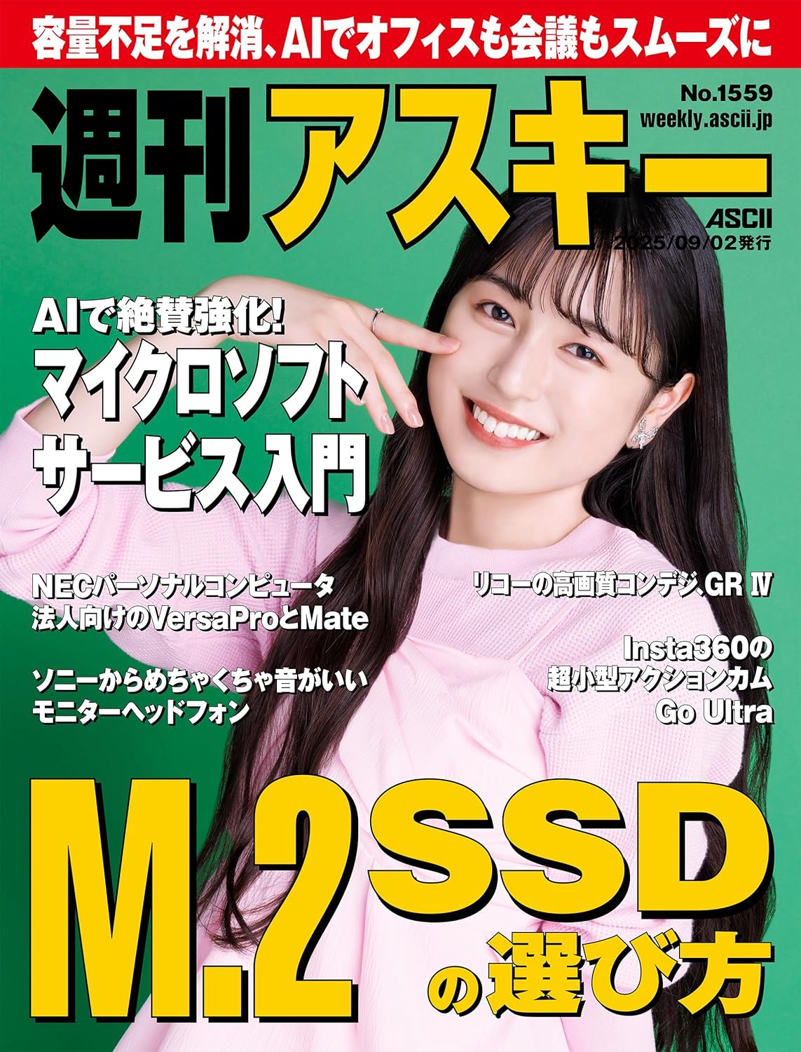 特集1はマイクロソフトのサービスをおさらい。Windowsで仕事をするなら切っても切れないツールの現在地点は? 特集2はM.2 SSDの選び方。容量価格+αでセレクト。表紙の人:織田ひまりリコーが「GR IV」を発表、フラッグシップのコンパクトカメラInsta360は超小型の「Go Ul…
