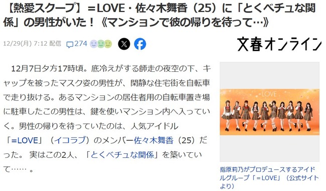 【文春砲】=LOVE・佐々木舞香(25歳)に「とくべチュな関係」の男性がいた!《マンションで彼の帰りを待って…》【4歳下のイケメン俳優日向亘(21歳)】 AKB48 X Facebook はてブ Pocket LINE コピー 2025.12.30 元記事リンク: https://akb48taimuzu.livedoor.biz/archives/62893847.html
