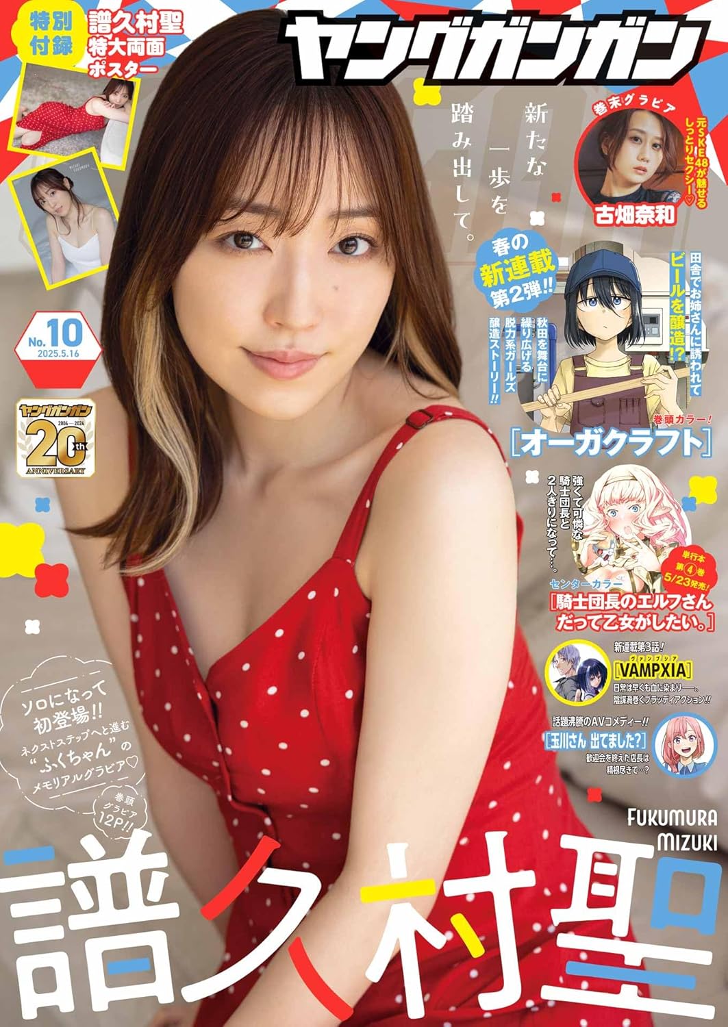 2025年5月発売◆“ふくちゃん”こと「譜久村聖」がグループ卒業後、ソロになってから初登場!!新たな一歩を踏み出した彼女の魅力満載のメモリアルグラビアを大増12Pでお届け!!巻末グラビアは「古畑奈和」!!元SKE48で朝ドラにも出演した彼女のしっとりセクシーな姿をご堪能あれ♪巻頭カラー…