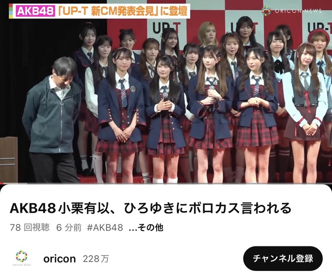 【悲報】AKB48小栗有以、ひろゆきにボロカス言われる【UP-T 新CM発表会見】 小栗有以 X Facebook Hatena Bookmark Pocket LINE Copy 2025.05.02 元記事リンク: https://akb48taimuzu.livedoor.biz/archives/62326295.html