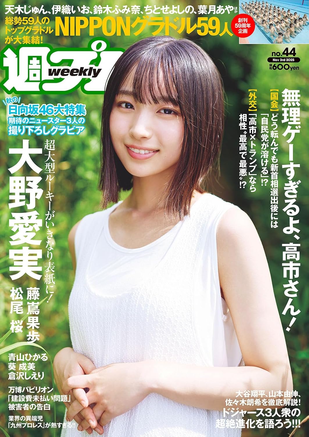 2025年10月発売※デジタル版特典グラビアカットを追加収録!※今週の週プレは秋の日向坂46大特集!大野愛実、藤嶌果歩、松尾 桜日向坂46ニュースターのグラビア3連発に、今年もお祭り騒ぎやっちゃいました!創刊59周年を彩るNIPPONグラドル59人が大集結!国会に外交に、無理ゲーすぎるよ高…