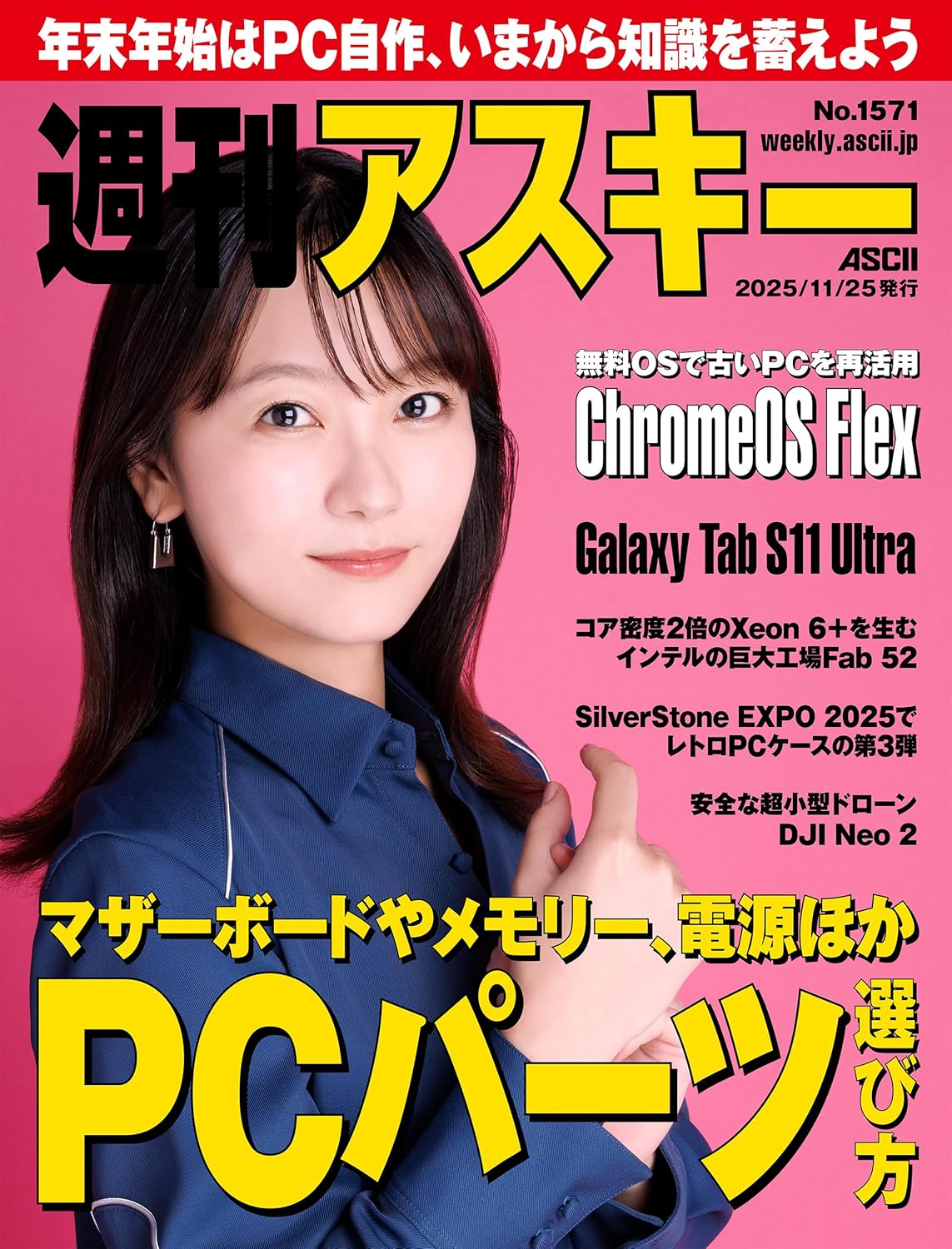 2025年11月発売特集1は自作パーツの選び方。マザーボードやメモリー、電源など購入時におさえるべきポイントを解説。特集2はWindows 11が使えなくなったパソコンでも動き、有効活用できる無料OS、ChromeOS Flexの導入術だ。表紙の人:工藤綾乃【NEWS】自撮りVlogの空撮にもいい、安全でピ…