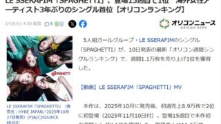 【悲報】LE SSERAFIMさんのシングル「SPAGHETTI」初週8.9万枚。累計売上は11.6万枚【元HKT48宮脇咲良】