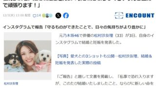 【元乃木坂46】松村沙友理、結婚&妊娠を発表「引き続き私らしくさゆりんご全開で頑張ります!」【さゆりんごがデキ婚】